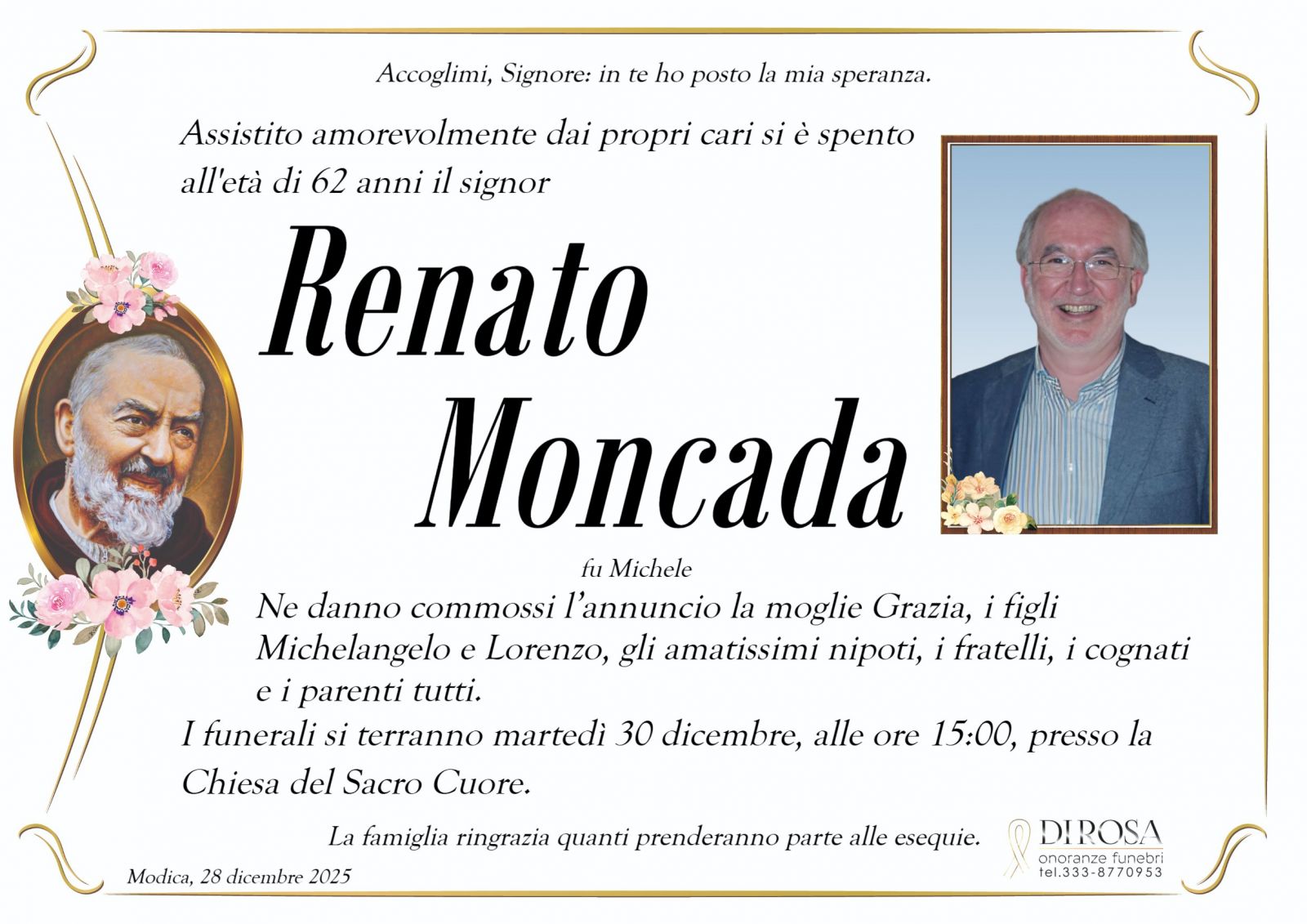 Lascia gratuitamente un messaggio di cordoglio, sarà nostra cura consegnarlo ai congiunti di Renato Moncada.